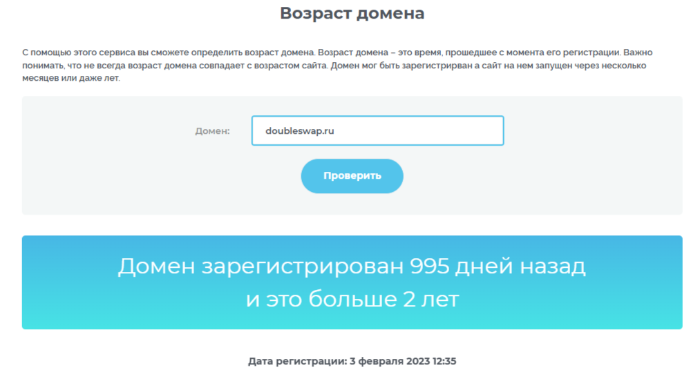 По результатам обследования веб-сайта платформы для обмена мы обнаружили следующее. Домен doubleswap ru появился в интернете 03 февраля 2023 года. Более двух лет сервис оказывает свои услуги целевой аудитории. За это время владельцы площадки не соизволили легализовать обменные операции и обеспечить клиентов нужными гарантиями.