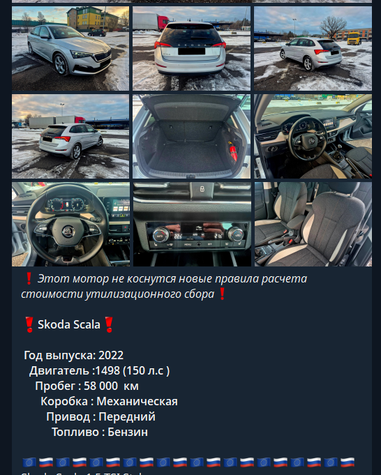 Контент канала состоит из объявлений о том, какие машины его владельцы нашли в Евросоюзе. Они публикуют фото и характеристики, называют цену, которая действительно оказывается сильно ниже цены на аналогичную машину внутри РФ.