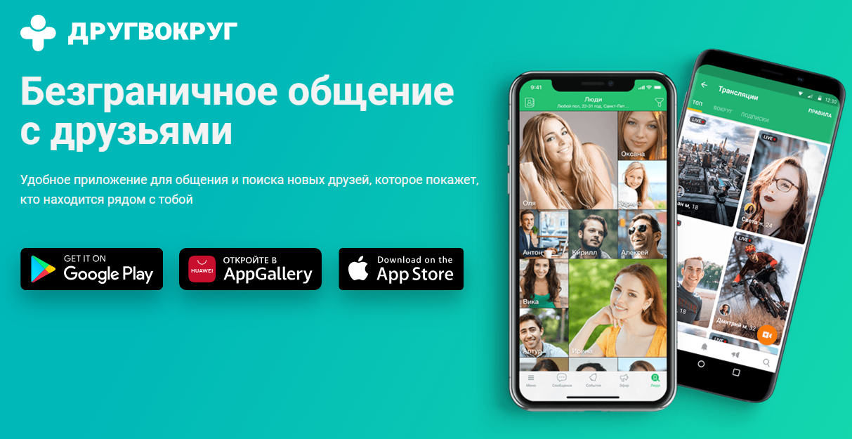 Официальный сайт проекта — drugvokrug ru, из соцсетей у него есть только сообщество в ВК с 279 000 подписчиков. О владельцах Друг Вокруг ничего не известно. Весь его функционал собран в мобильном приложении, которое доступно под Android и iOS.