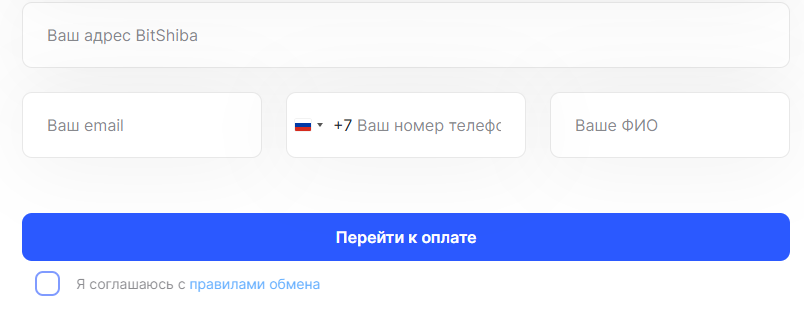 После выбора обменной пары, пользователям необходимо заполнить форму, указав там личные данные, а также номер счета, куда должны поступить средства. В конце нужно поставить соглашение с правилами сервиса.
