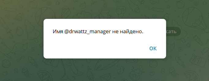 Также на странице обменника Drwattz Com мы нашли разделы с контактной информацией, правилами и отзывам. Однако перейдя во вкладку «Поддержка», нас сразу перекинуло на аккаунт менеджера в Телеграм. Причем эта страница оказалась несуществующей, что очень странно, так как других способов связи с руководством нет.