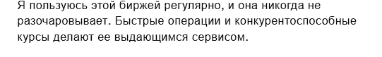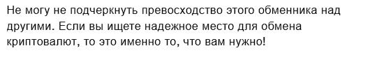 Таким образом, если судить по отзывам, данный обменник действительно оправдывает свою саморекламу. Но есть подозрение, что часть комментариев заказные, так как у себя на сайте сервис обещает некие бонусы за отзывы. За какие именно, не уточняется – предлагают писать в Telegram. Но обычно компании платят именно за позитивные фидбэки.