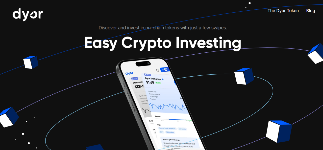 Ознакомиться с проектом можно через официальный веб-ресурс. Он оформлен на английском языке и сменить его не получится. Создатели преподносят Dyor Exchange как простой способ инвестирования в цифровые валюты. Миссия проекта — уменьшить разрыв между пользователями, ДеФай и Веб3.