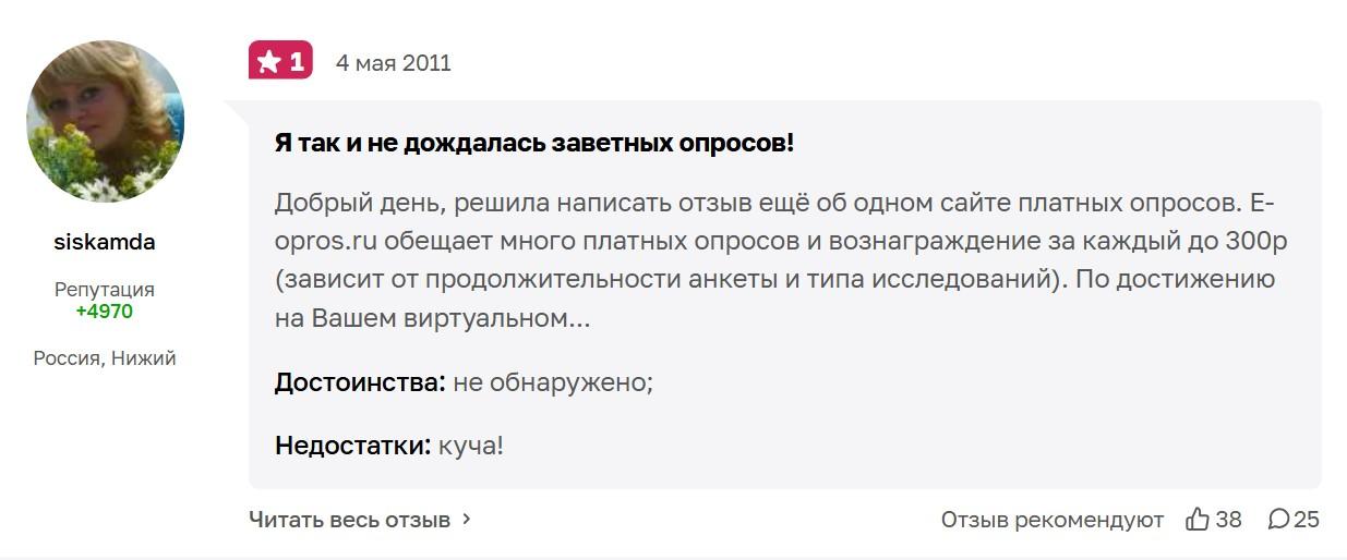 Честные отзывы о e opros ru