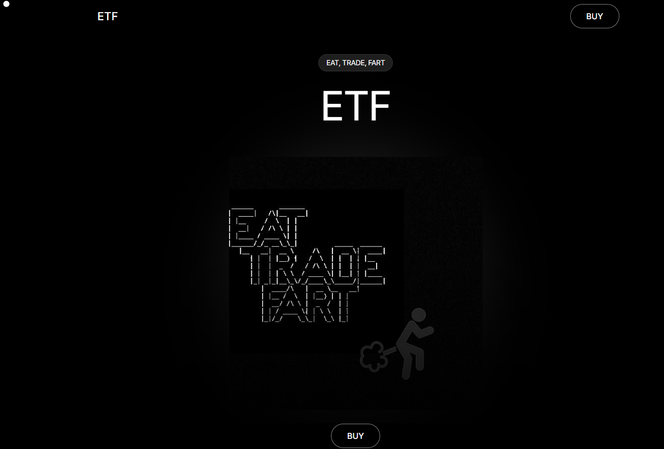 Eat Trade Fart (ETF) — мемкоин, запущенный в 2025 году на блокчейне Solana. Проект позиционирует себя как «движение», объединяющее криптоэнтузиастов через юмористические активности: еду, трейдинг и другие повседневные ритуалы. Заявлена цель интеграции токена в платежные системы и создание продуктов для сообщества.
