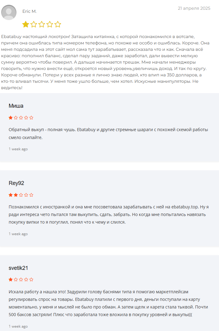 Разобравшись с конкретными техническими фактами, обратимся к отзывам о Ebatabuy, чтобы сформировать полноценную картину проекта. Важно учитывать только комментарии реальных людей, оставленные на сторонних независимых платформах. Это минимизирует риск фальсификаций и прочих проблем.