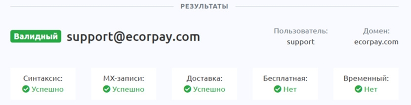У кошелька работает служба поддержки – support ecorpay com. Проверка показала, что электронная почта действующая. Значит, пользователи не остаются без поддержки. Никакие другие контактные данные у криптовалютного кошелька нами не найдены.