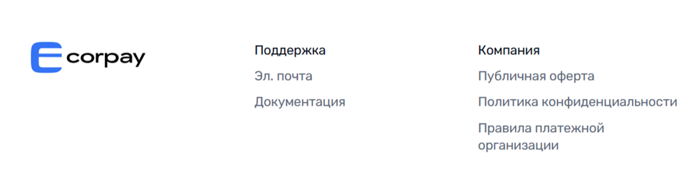 Кошелек «Экорпэй» представлен в виде стандартного сайта, где для пользователей предлагается несколько вкладок, но информации там очень мало. Перед регистрацией желательно ознакомиться с правилами платежной организации и политикой конфиденциальности. Также там находится публичная оферта. Есть информация и о том, как перевести деньги с приложения Ecorpay: