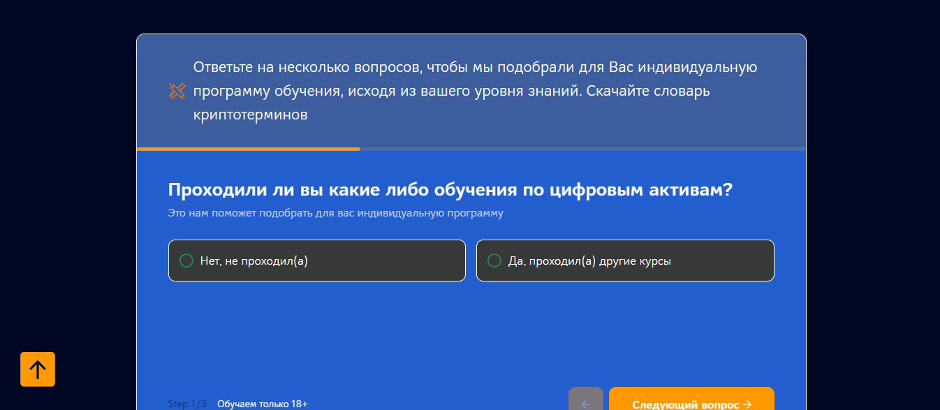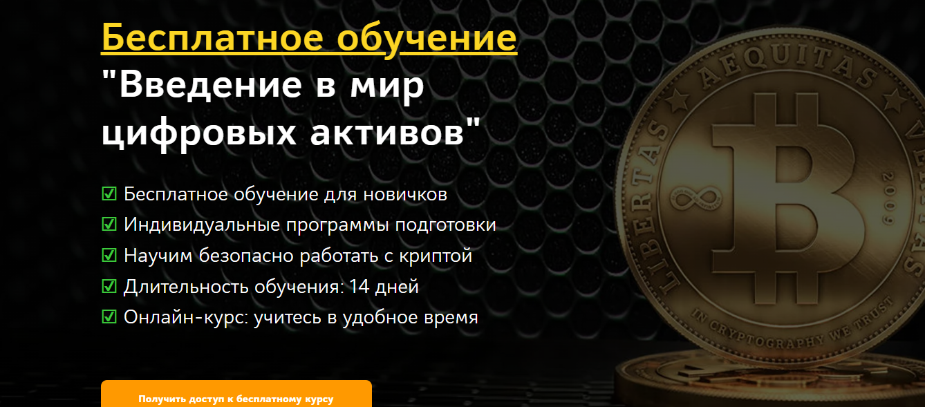 Автор позиционирует курс как онлайн-марафон “Введение в мир цифровых активов”, доступный бесплатно в течение 14 дней. Идея — через серию вебинаров и лекций зацепить целевую аудиторию, собрать контактные данные , после чего предложить подключение к платному формату или продолжению обучения. По форме это выглядит как лид-магнит — замануха бесплатными вебинарами, чтобы мотивировать оставить номера и email.