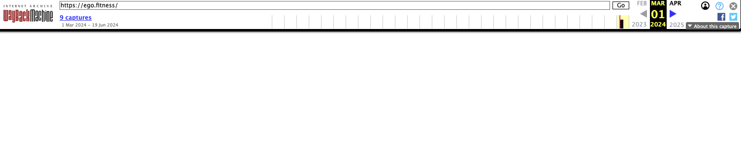 Первый снимок сайта в WayBackMachine датирован 1 марта 2024-го года. Это говорит о том, что домен не был ошибочно разделегирован, а затем продлен владельцем проекта.В «Веб-архиве» есть несколько снимков сайта «Эго Фитнес». Однако, ни один из них не открывается. Вместо запрошенной страницы отображается пустой экран.