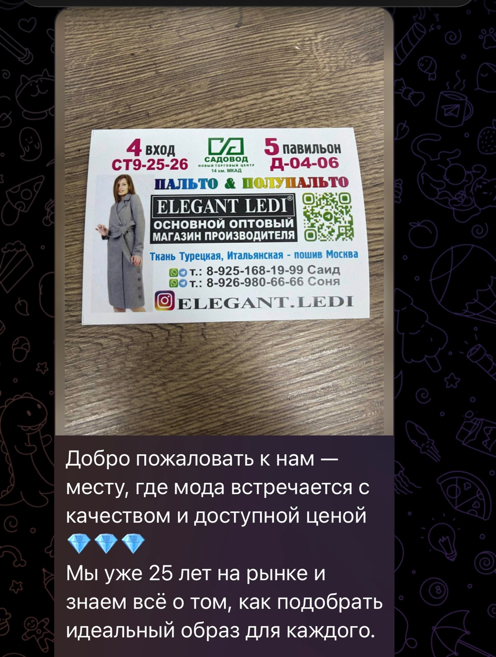 Оставьте отзыв на Elegant ledi, если вы совершали здесь покупку или располагаете о нем информацией.