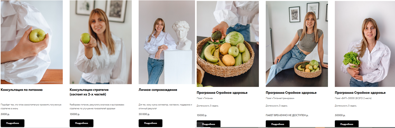 На сайте и в паблике «Похудение и здоровье с Еленой Трофимовой» выложены цены на программы. Консультация по питанию от ₽5,000, а личное сопровождение от ₽30,000. За программу «Стройное здоровье», рассчитанную на пять недель, прийдется выложить ₽15,000, а участие в формате VIP обойдется в ₽50,000. Диагностика заявлена бесплатно с возможностью созвона на 30 минут.
