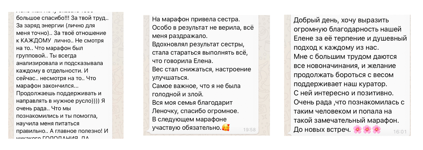 На сайте выложены отклики, где повторяется мысль, что после разбора людям стали ясны ошибки в питании, появился план и понимание того, куда двигаться дальше.