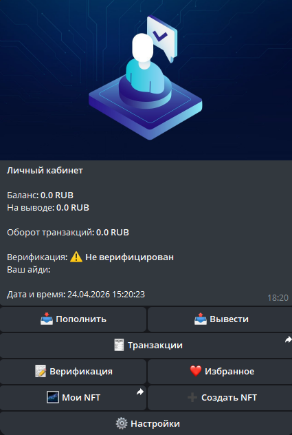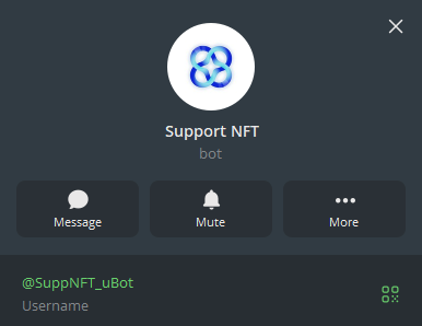 Какой-либо информации о владельце нет, как и об официальной регистрации сервиса. Связь с оператором осуществляется через еще одного бота, подписанного как Support NFT (юзернейм @ SuppNFT uBot).