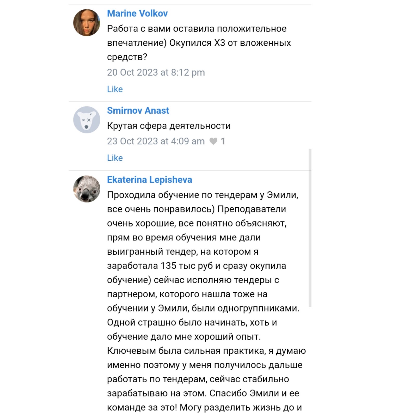 В группе ВКонтакте оставлены комментарии о том, что обучение понятное, и благодаря ему удалось окупить стоимость курса и заработать.