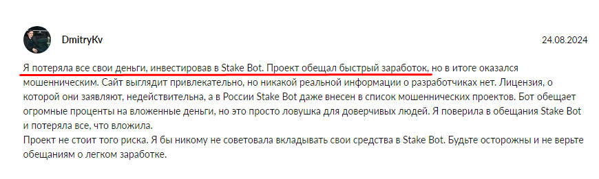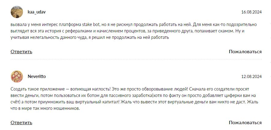 - зафиксированы отрицательные отзывы об аналогичном боте.