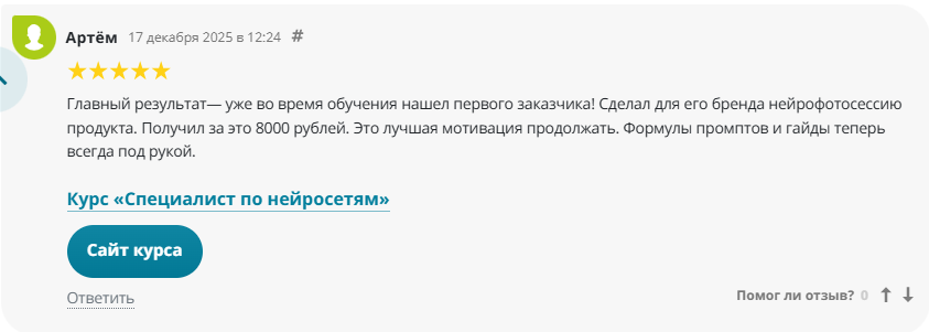 В целом курс может подойти тем, кто хочет научиться использовать готовые ИИ-инструменты для практических задач. Но рассчитывать на глубокую техническую подготовку или гарантированный доход после обучения не стоит.