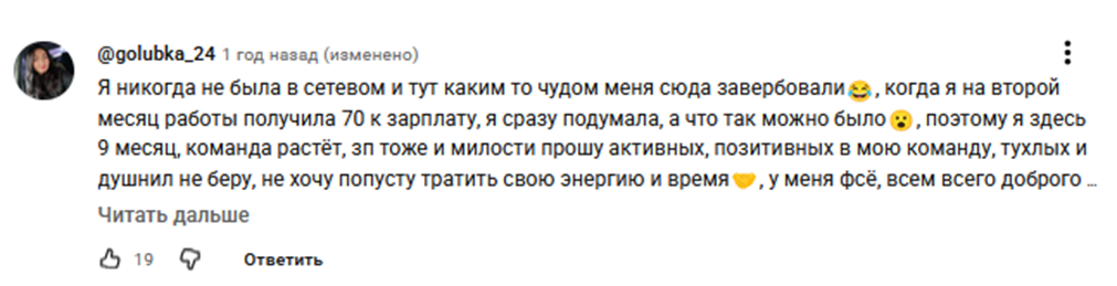 - работа по схеме сетевого MLM-маркетинга, что компания не скрывает;