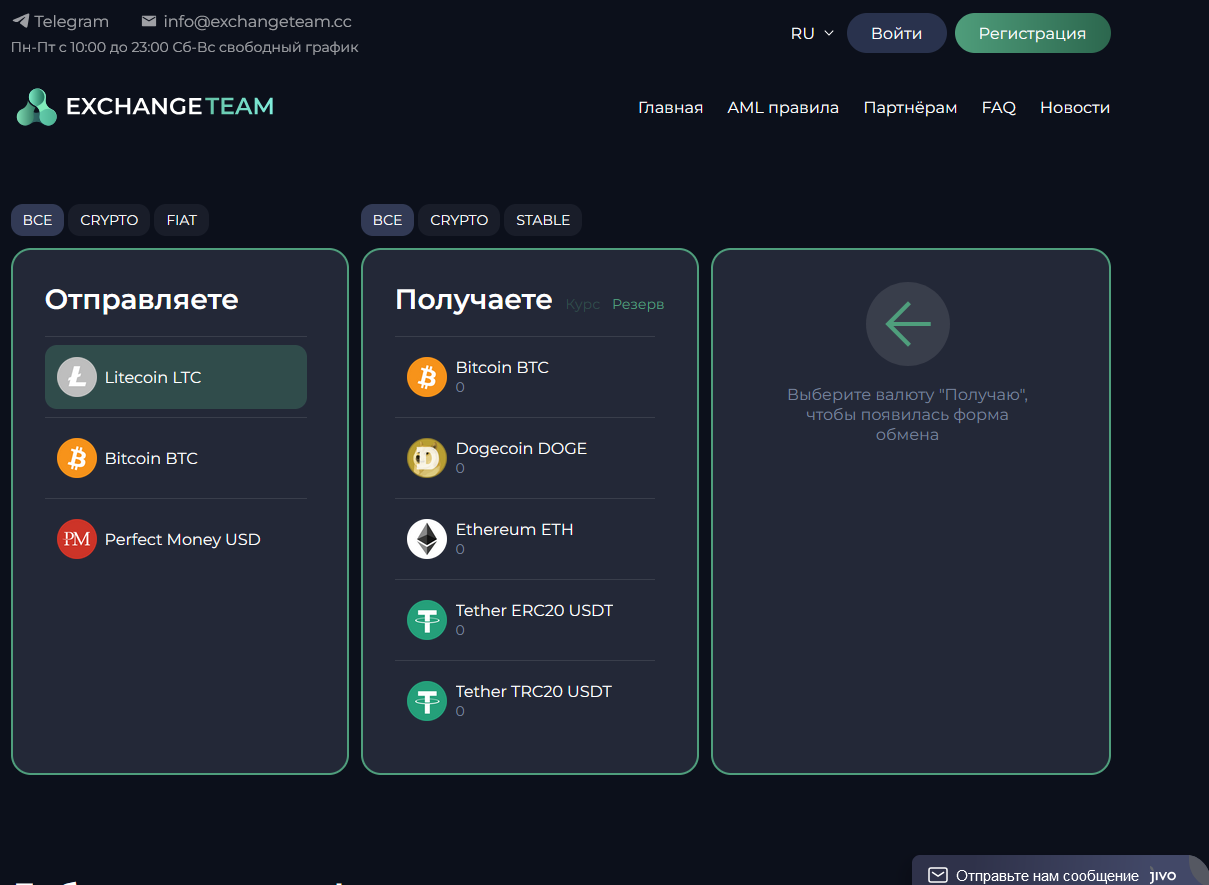 Обменник ExchangeTeam Cc: отзывы, анализ надежности сервиса Эксчендж Тим