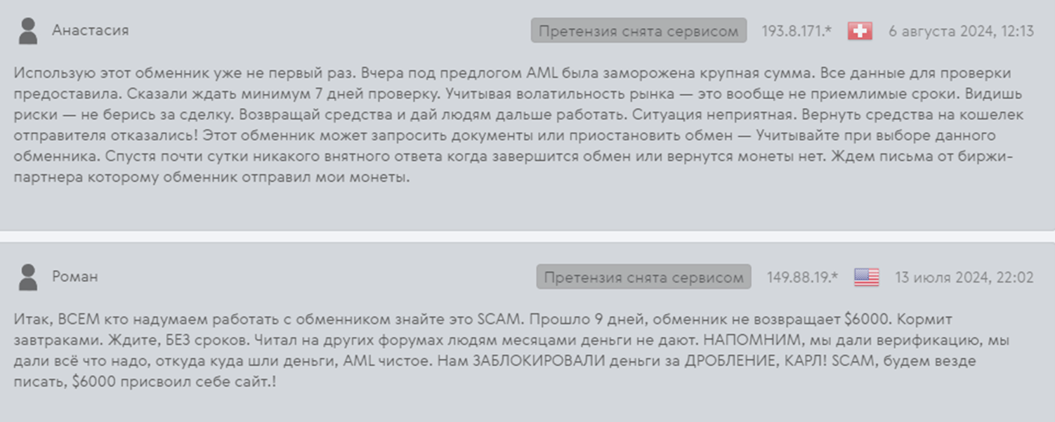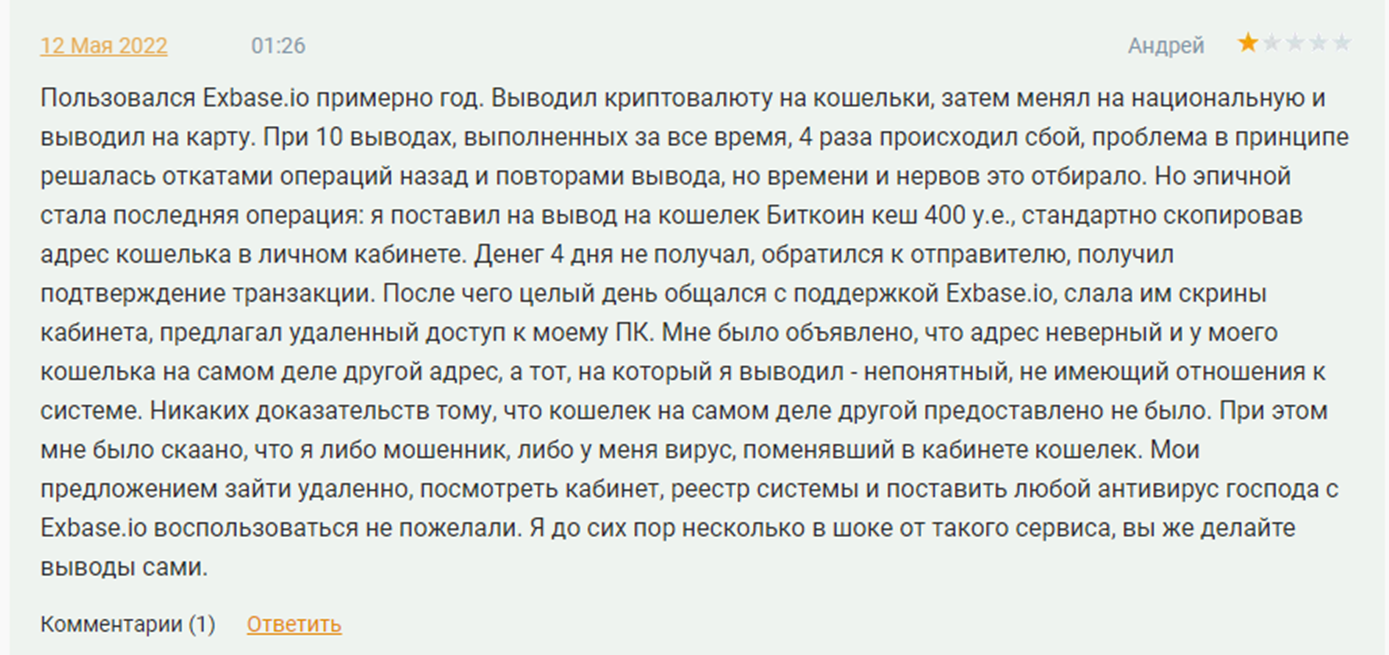На сторонних форумах положительные отзывы на Exhub io щедро разбавлены негативными. Недовольны клиенты по одной и той же причине — блокировка средств и проверки в течение нескольких месяцев. Якобы сервис заподозрил их в мошенничестве, но не вернул ни депозит, ни дал четких разъяснений. Есть даже случаи продажи сервисом “грязных” биткоинов.