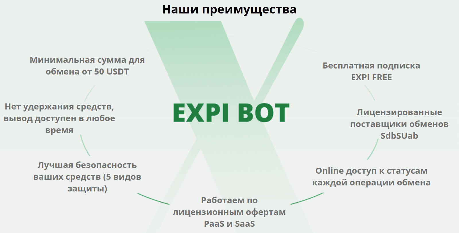 Минимальная сумма обмена на Экспи Бот составляла 50 долларов США. Преимущества у проекта, были, как и полагается, «уникальными и лучшими» (короче банальными, неуникальными и тухлыми):