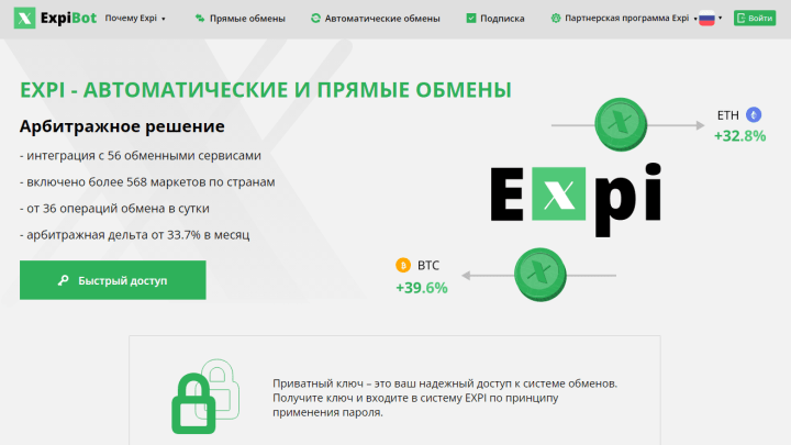 Как утверждалось на сайте, Expibot давал возможность заниматься криптовалютным арбитражем без рисков. Курсы обмена фиксировались на выбранных отметках. Но, такими же «преимуществами» могли похвастаться абсолютно все конкуренты.