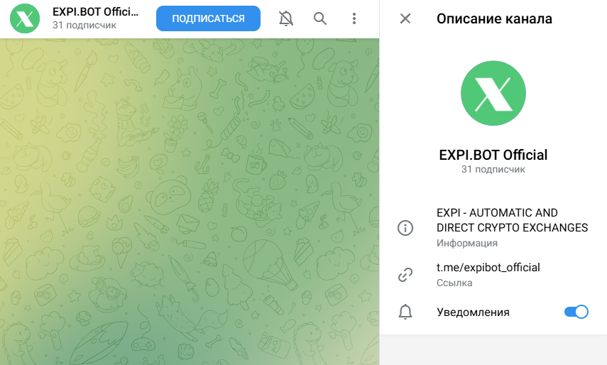 В ТГ у обменника есть канал @expibot_official. Но назвать его «каналом» точно нельзя.