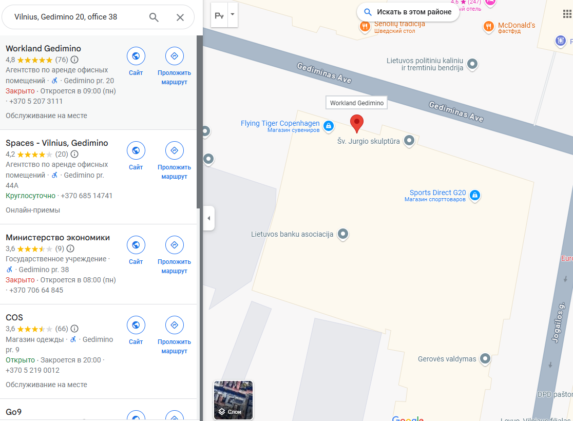 А если пробить адрес «Vilnius, Gedimino 20, office 38» через Гугл, окажется, что он используется еще одной компанией с негативными отзывами (SdbS):