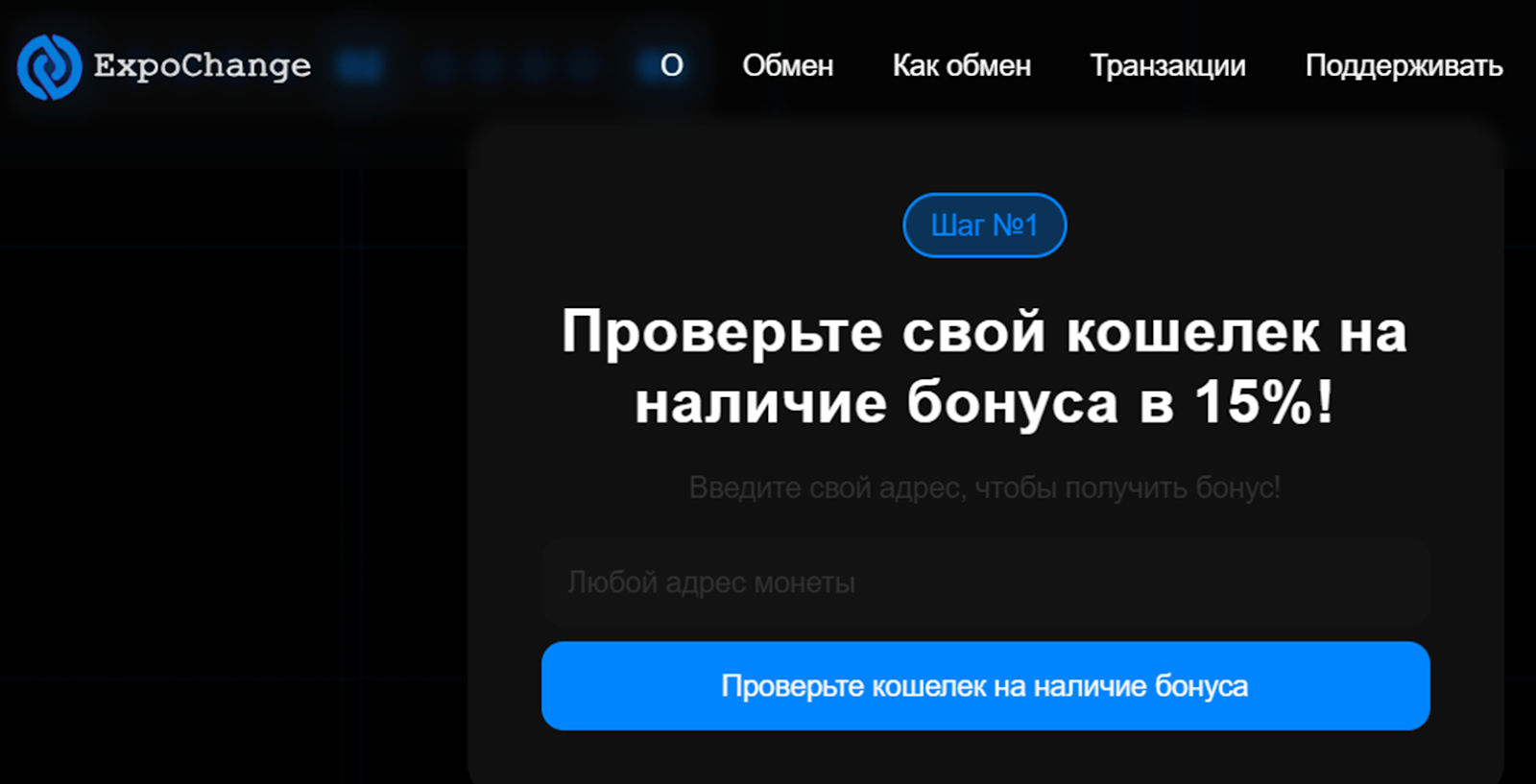 Пользователю предложено ввести адрес своего кошелька в специальное окно, чтобы проверить, будет начислен бонус в 15% или нет. Критерии, по которым кошельки подходят под бонусную программу остаются загадкой.