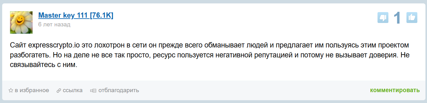 • наличие негативных отзывов о ExpressCrypto;