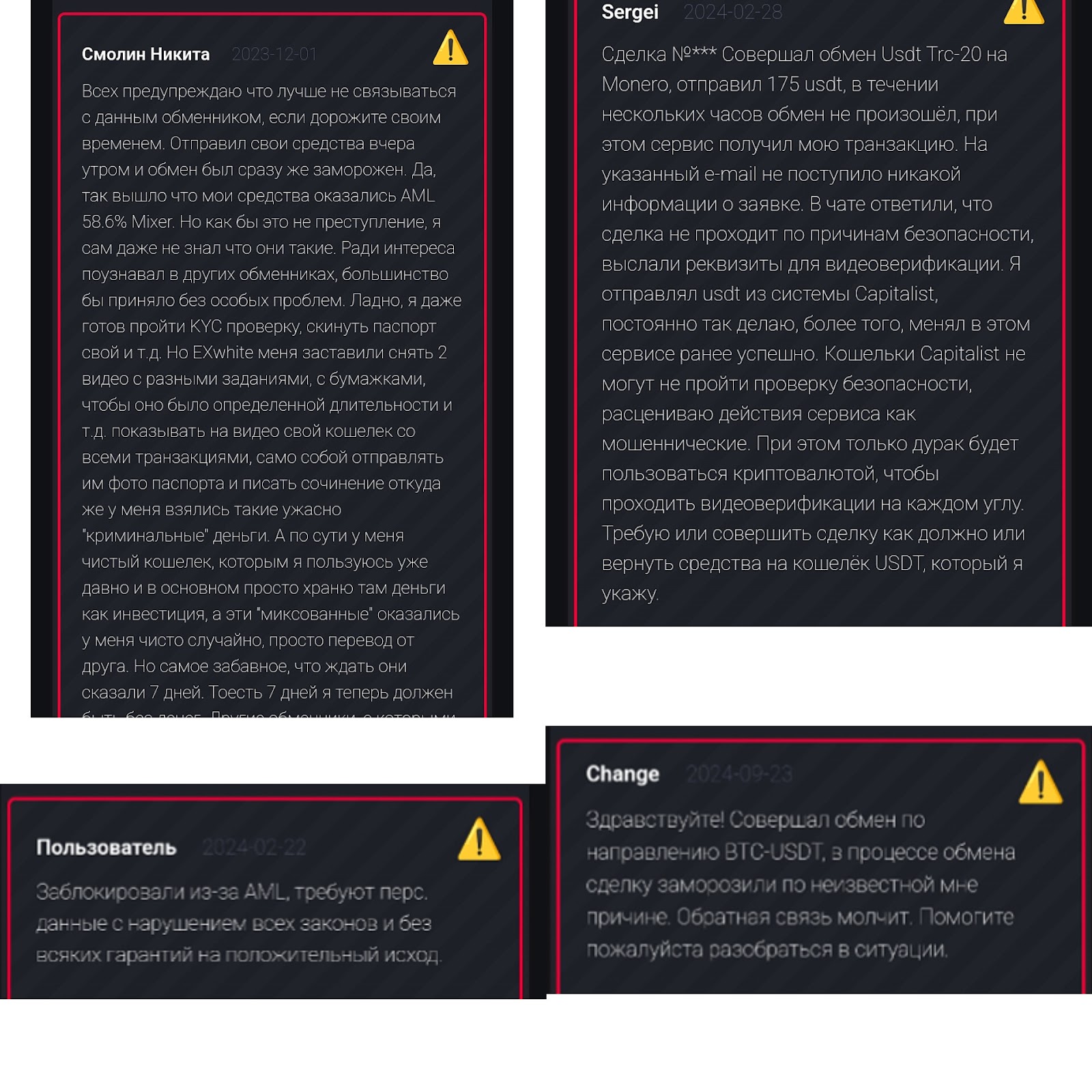 В интернете встречаются отзывы, в которых пишут о том, что у обменника крипты Exwhite io есть признаки скама. Транзакции пользователей блокируют, при этом средства не возвращаются на счета клиентов.