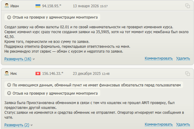 Дополнительно обменник проводит акции с выплатами за публикацию положительных отзывов на сторонних площадках. Такой формат формирует мотивированный фидбек и снижает достоверность позитивных комментариев.