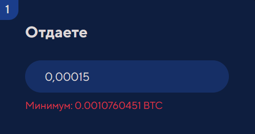 Fairal com сообщает, что минимальной суммой для обмена является 0,001 биткоина. На апрель 2025 года это примерно 7000 рублей или 80 долларов.