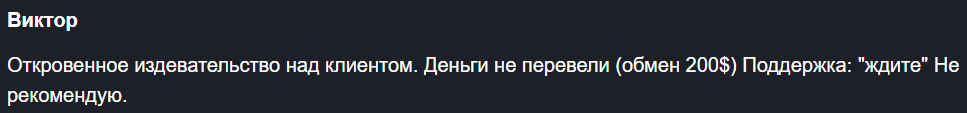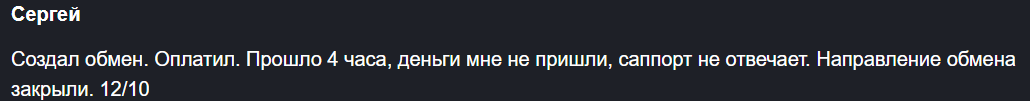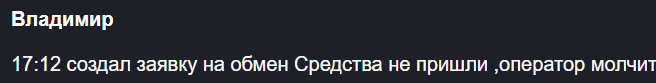 Зачастую жалуются клиенты на одно и то же – деньги после обмена не переводят, а при обращении в поддержку не отвечают.
