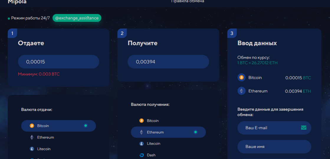 Проект копирует шаблоны других обменников, например Mipola, известного как мошеннический сайт.