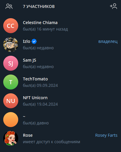 Среди участников в основном пустые профили, некоторые из них неактивны уже несколько месяцев. При этом из самого чата почти все сообщения были удалены, из-за чего понять, что сейчас происходит с фарткоином на криптобирже, нельзя.