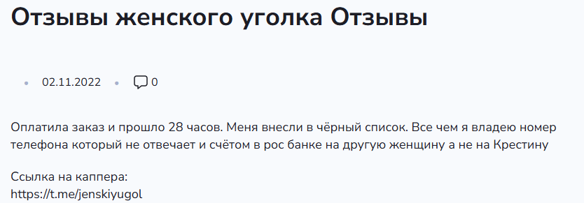 Сообщество несколько раз меняло ссылки и названия. Так, оно уже было известно как Fashion shop (fashionspk), Женский уголок (jenskiyugol) и др. Это само по себе является негативным фактором, так как в большинстве случаев подобными манипуляциями занимаются авторы, стремящиеся скрыться от негатива.