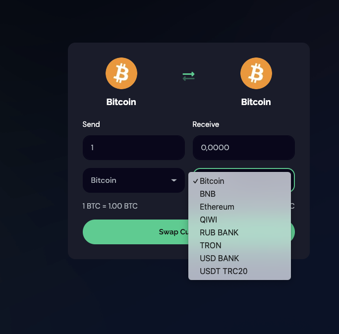 FastExchenge — онлайн-обменник, владельцы которого предлагает услуги по эксчейнджу нескольких популярных криптовалют: Bitcoin, Ethereum, BNB, TRON и USDT TRC20. Также на сервисе предоставляют инструменты для покупки и продажи крипты за фиатные деньги.