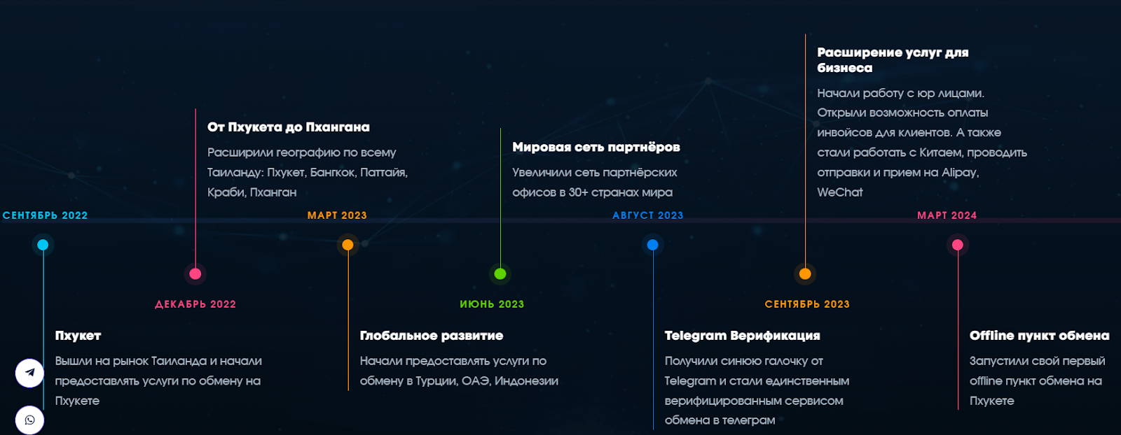 Биржа Fast Money подробно рассказывает свою историю. Она появилась в Таиланде в 2022 году и постепенно расширилась на Пхукет, Бангкок, Турцию, ОАЭ, Индонезию. Такая детальная информация вызывает доверие. Правда, сервис Whois показывает, что сайт «Фаст Мани» зарегистрирован только в 2024 году — возможно, до этого компания работала офлайн.