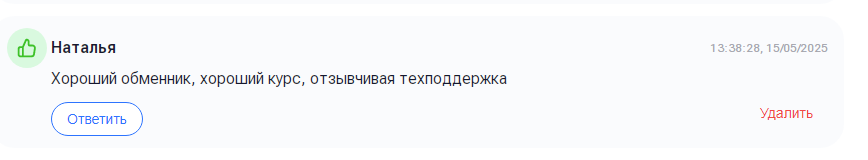 Наталья также оставила положительный отзыв в котором отметила выгодный курс и качественную работу клиентской службы.
