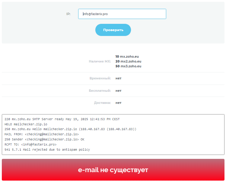 Электронный почтовый info @ fasterix pro ящик отключен и не работает. Однако на сайте указан альтернативный е-мейл, а для связи с клиентской службой имеется внутренний чат.