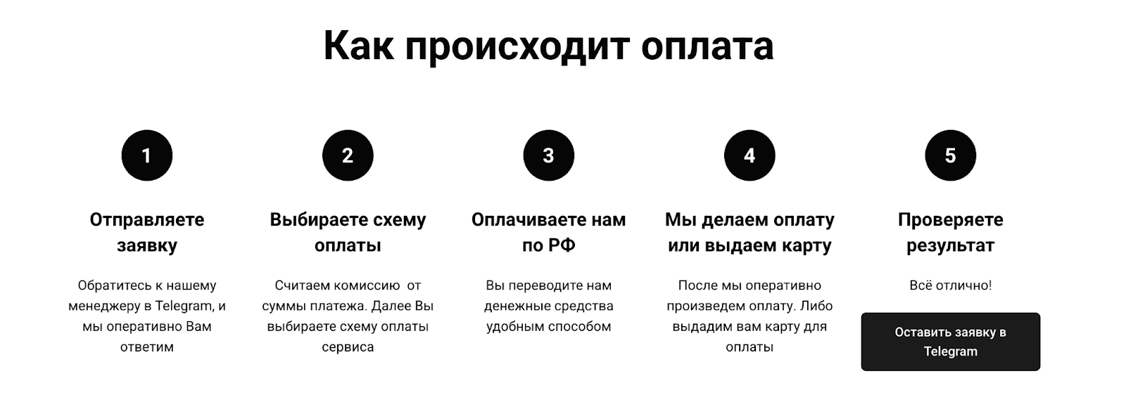 Оплата проходит стандартно: клиент оставляет заявку в боте или чате, получает расчет комиссии и реквизиты для перевода. После оплаты менеджер подтверждает получение средств и проводит платеж через иностранный сервис. В зависимости от направления могут использоваться карты третьих лиц, корпоративные счета или собственные платежные инструменты исполнителей. Для крупных сумм предлагаются отдельные условия через FDT Corp bot.