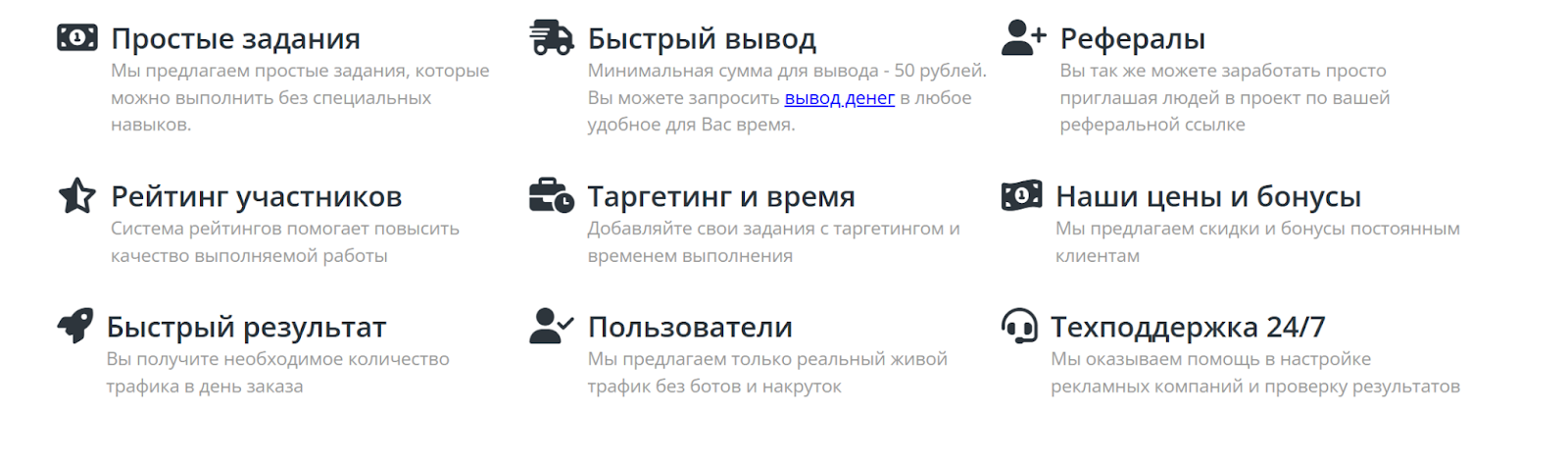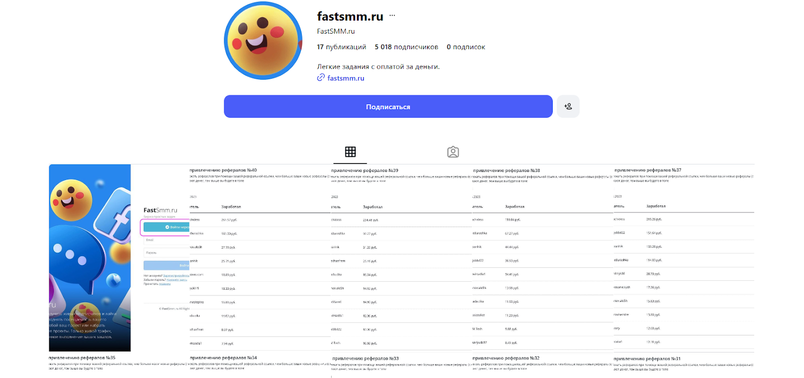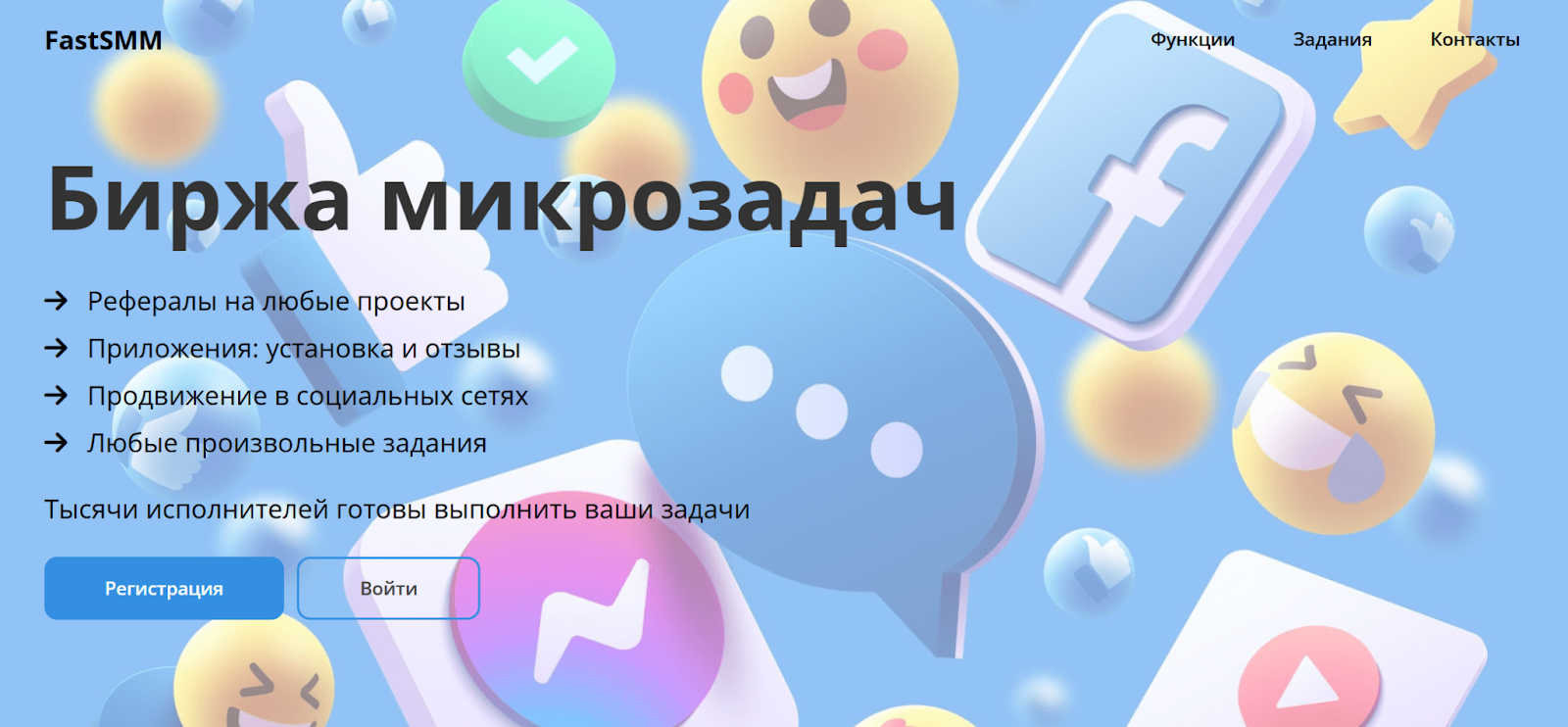 FastSmm позиционируют себя как простой и доступный сервис для заработка и раскрутки разного рода проектов. Создатели платформы пытаются привлечь новых участников простотой заданий, быстрым выводом и реферальной программой.