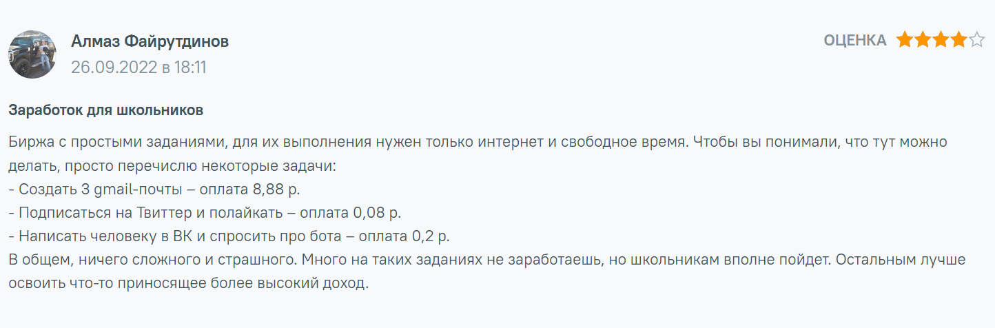Клиенты также жалуются на крайне небольшой размер заработка. Такая платформа в большей части подходит для школьников.