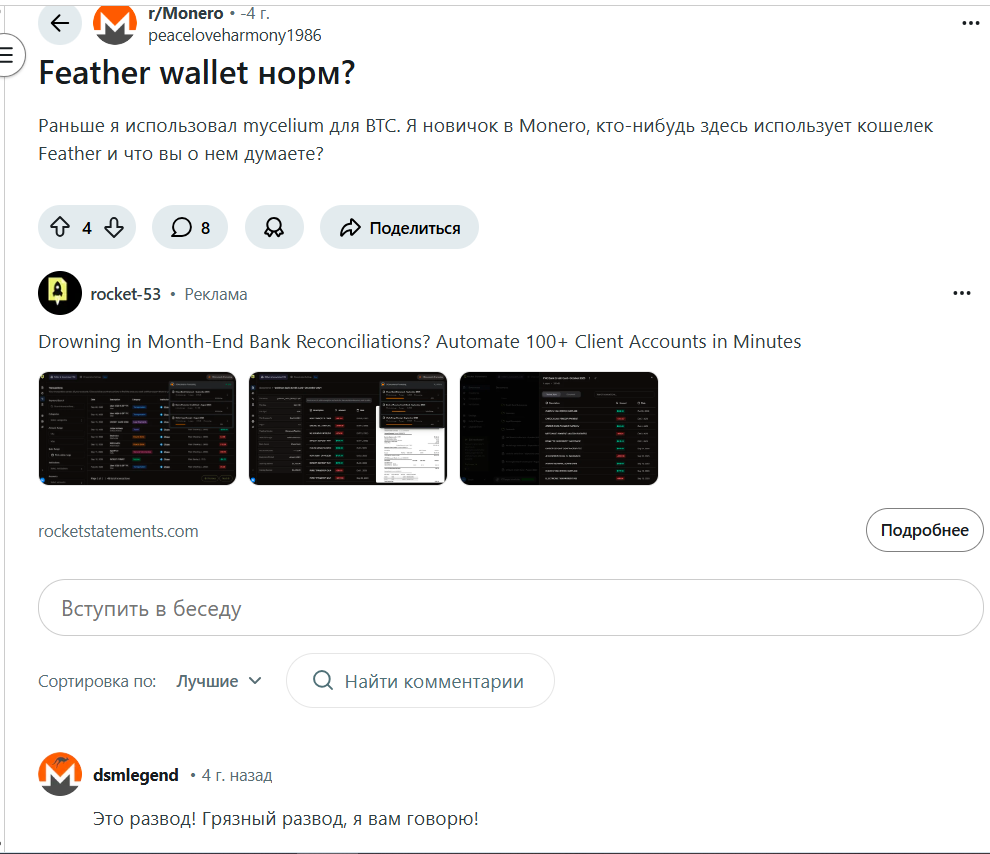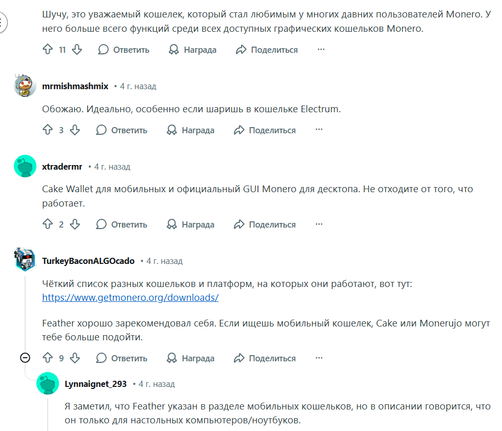 Основное живое обсуждение происходит на Reddit и в сообществах Monero. Там сервис воспринимается как проверенный кошелек, особенно среди опытных пользователей.