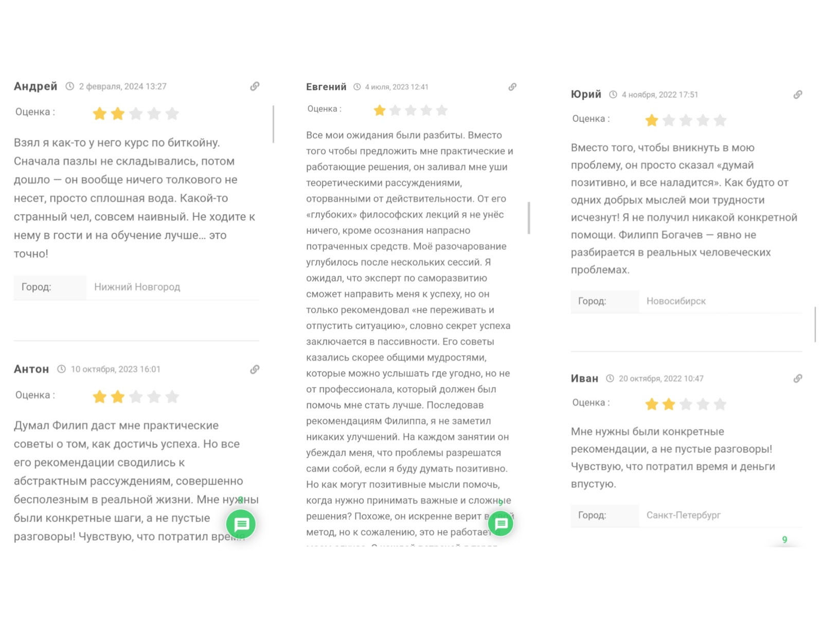 Во время разоблачения блога мы не нашли отзывов, указывающих на то, что Филипп Богачев инфоциган и занимается очевидным обманом пользователей.