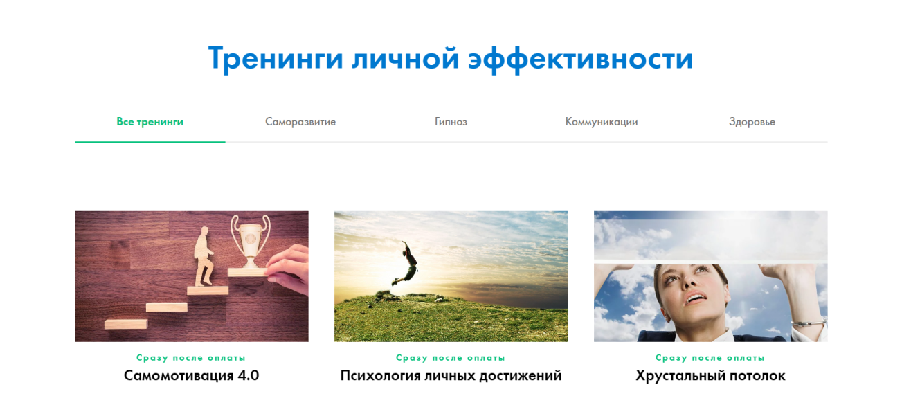 Филипп и его команда предлагают 2 вида тренингов: личной и бизнес эффективности. Например, из личной предоставлен тренинг “Самомотивация 4.0”. Поможет выработать навык достижения целей. Без куратора стоит 29 900 рублей, а с 39 900 рублей.