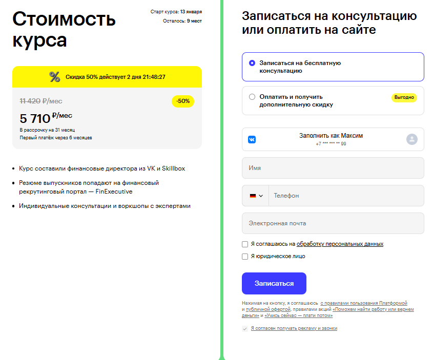 Агрессивный маркетинг с постоянными таймерами скидок, «последними местами» и давлением менеджеров на оформление банковской рассрочки также неоднократно упоминается как манипулятивный подход. Отсутствует гарантированное трудоустройство и реальная статистика по выпускникам. Резюме участников добавляются в базу без активной помощи в поиске позиции CFO.