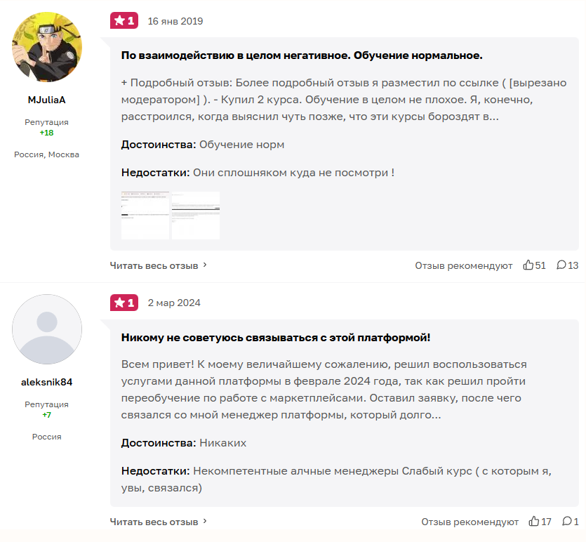 Курс дает лишь базовые и средние знания, которые подходят, скорее, для повышения квалификации уже работающих специалистов. Далее критикуется отсутствие отзывов от выпускников именно этого курса. Высокая стоимость в 177 024 рубля при скидке считается завышенной по сравнению с аналогичными программами конкурентов.