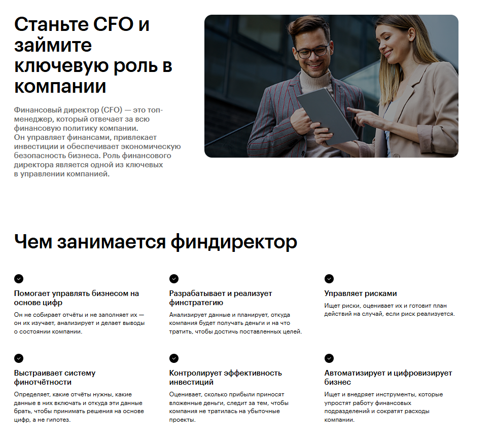 Вместо этого начали появляться статьи, которые посвящены курсу «Финансовый директор», где авторы подчеркивают проблемы подобных программ. Обещания освоить профессию топ-уровня за 4 месяца без серьезного предыдущего опыта в финансах невозможно. Позиция финансового директора требует многолетней практики управления командами и проектами на миллиарды рублей.